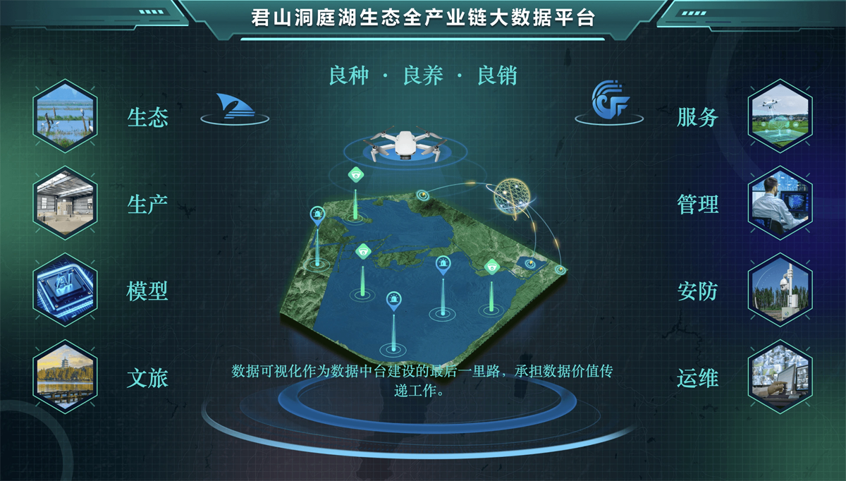 国渔科技将核心设施围绕“数字渔业”打造,构建君山洞庭湖渔业全产业链大数据平台,以全方位数字化体系支撑智慧养殖。