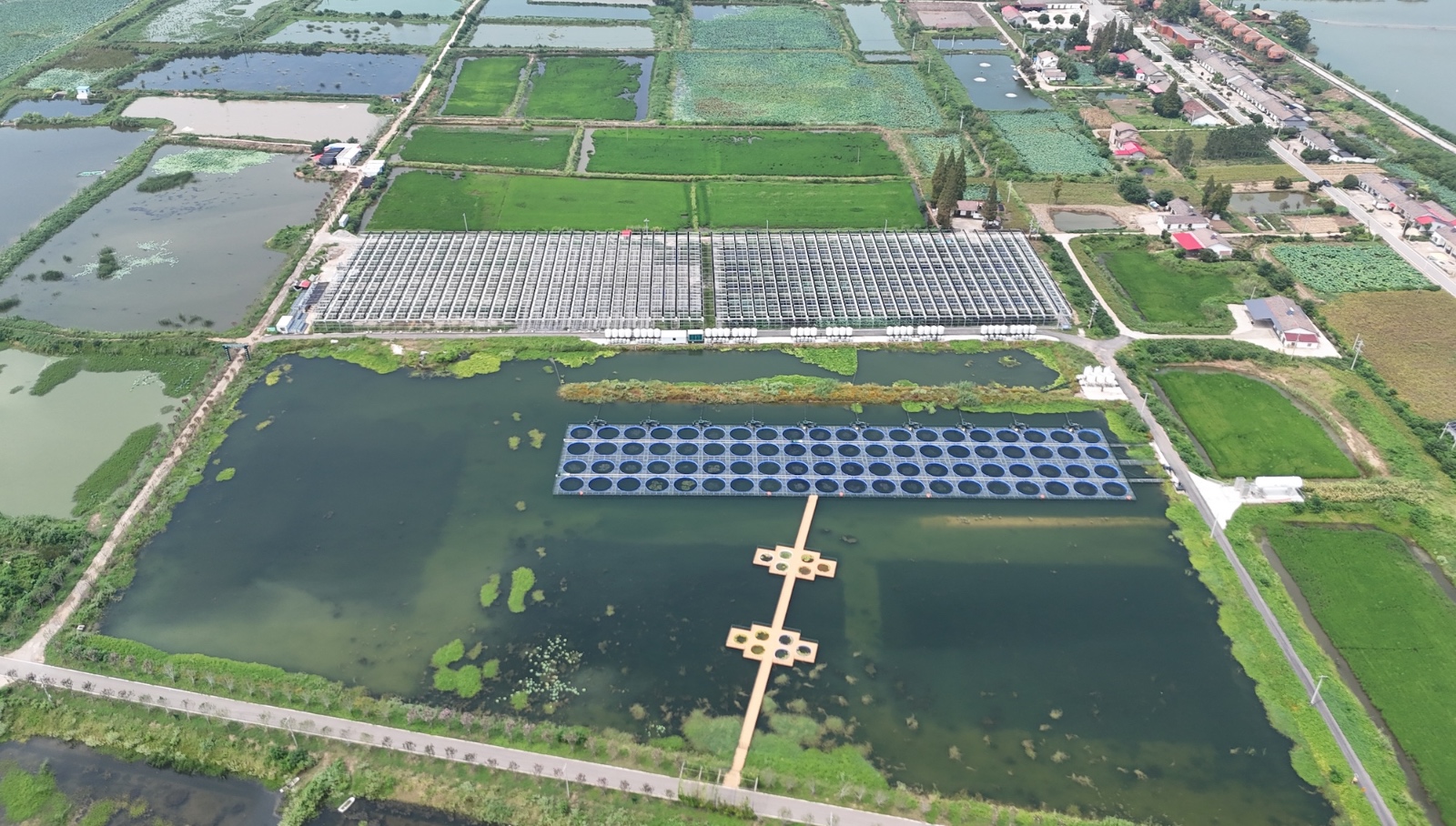 岳阳市君山区设施渔业精养塘项目布局于君山区钱粮湖镇、采桑湖镇核心区域,总投资约6219万元(含设施渔业固定资产投入5644万元、数字渔业监测系统投入575万元),国渔科技以“智能精准、绿色零排”为核心,构建陆基工厂化、水基圈养、特色种养协同的精养体系。项目中的水基池塘“零排放”绿色高效圈养系统,布设80个直径6米的零污染圈养桶,总养殖水体5200立方米;项目中的荷虾立体养殖基地587.7亩,形成“塘上种荷、塘下养虾”的生态种养模式。