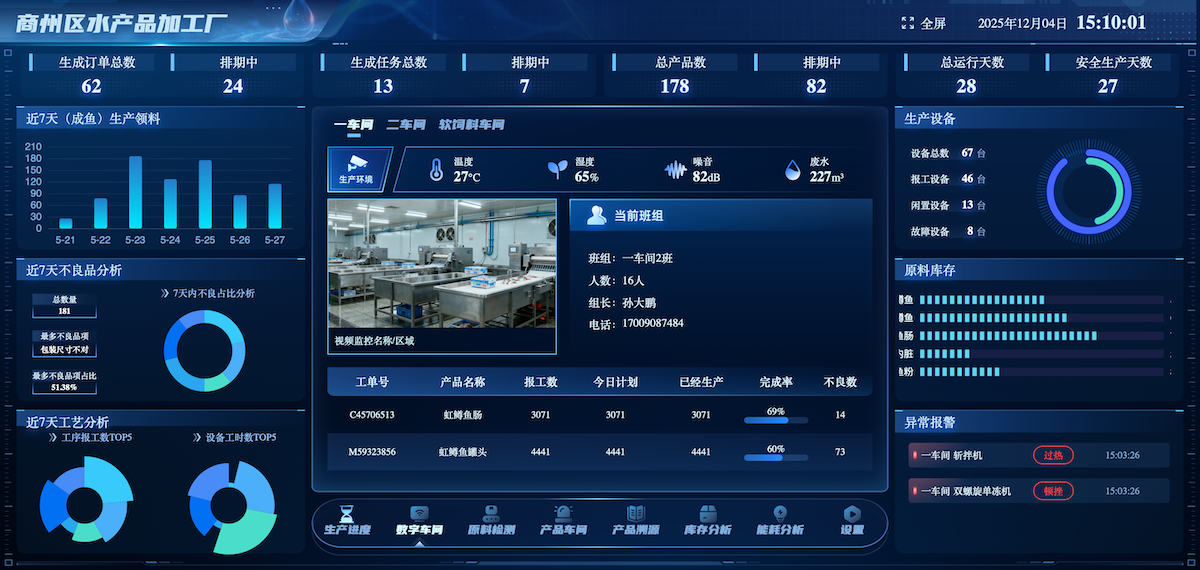 国渔科技以数字化赋能为核心驱动力,构建覆盖“养殖—加工—销售”全链条智能管理体系,升级传统产业模式。在冷水鱼加工中心,通过全产业链大数据平台实现全景可视化管理与智能决策;依托专题数据库整合各环节数据,支持精准管理与跨环节协同,提升效率与安全性。在品控与冷链流通端,利用区块链技术建立质量安全追溯系统,塑造“秦岭冷泉鱼”品牌信誉,全域数据支撑运输销售端的产销精准对接,借助智能营销系统进行市场预测与电商直播,重塑产业运行逻辑。